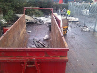 And finally, with our portacabin reduced to a pulp, it was time to contemplate loading the ruins into the waiting skip….
